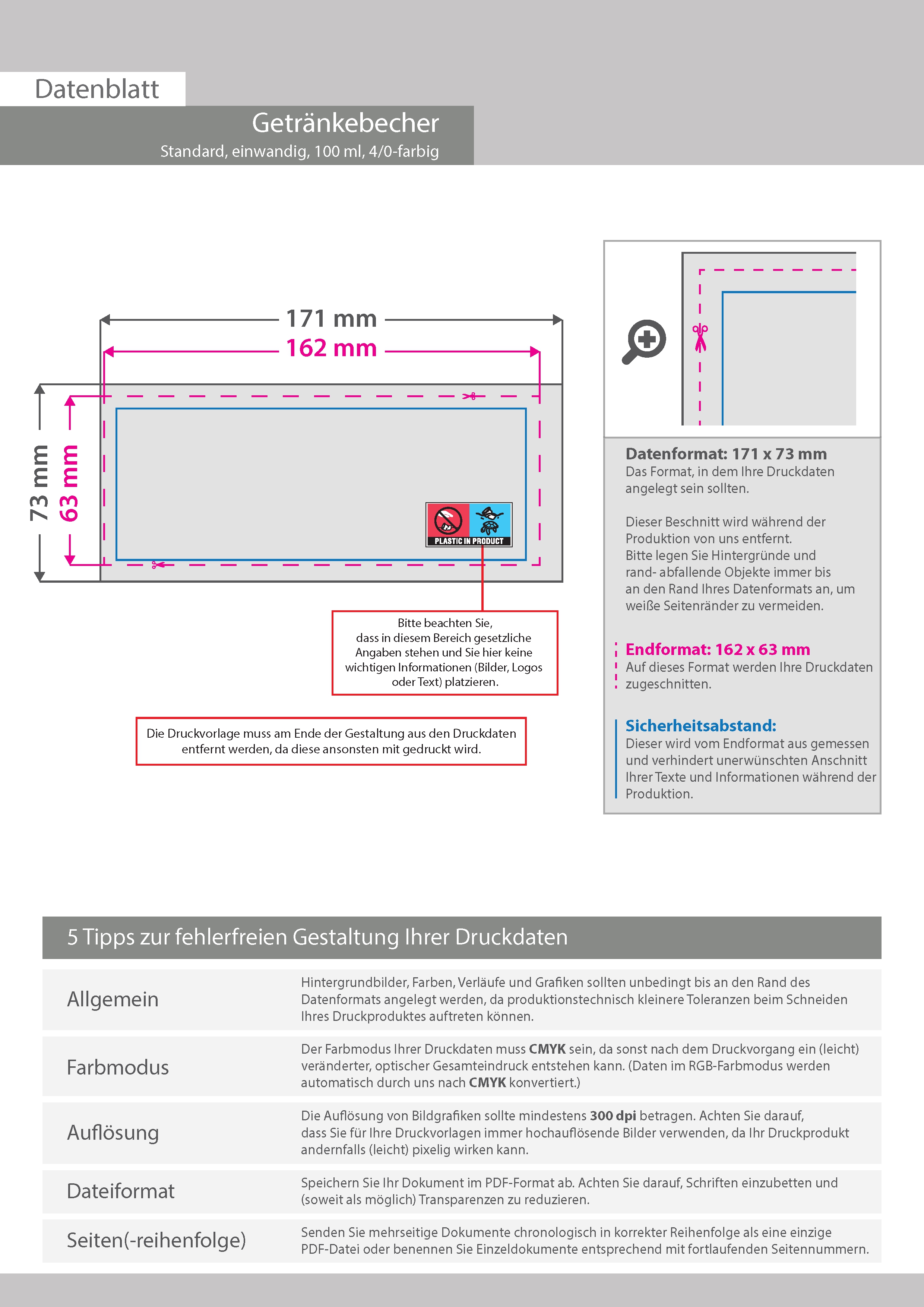 Becher einwandig 100ml, 4/0-farbig (CMYK)